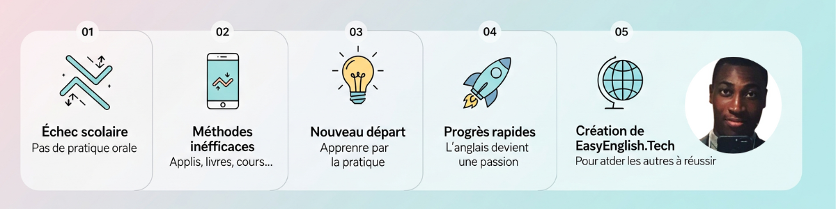 🗣️ Depuis toujours, je savais que l’anglais était essentiel pour ma carrière. Pourtant, le début de mon parcours scolaire dans cette langue a été un véritable échec. On passait notre temps à lire des textes, à mémoriser des règles de grammaire, mais très peu à parler ou à écouter. Résultat : je ne comprenais rien à l’anglais parlé, et j’étais incapable de m’exprimer naturellement.